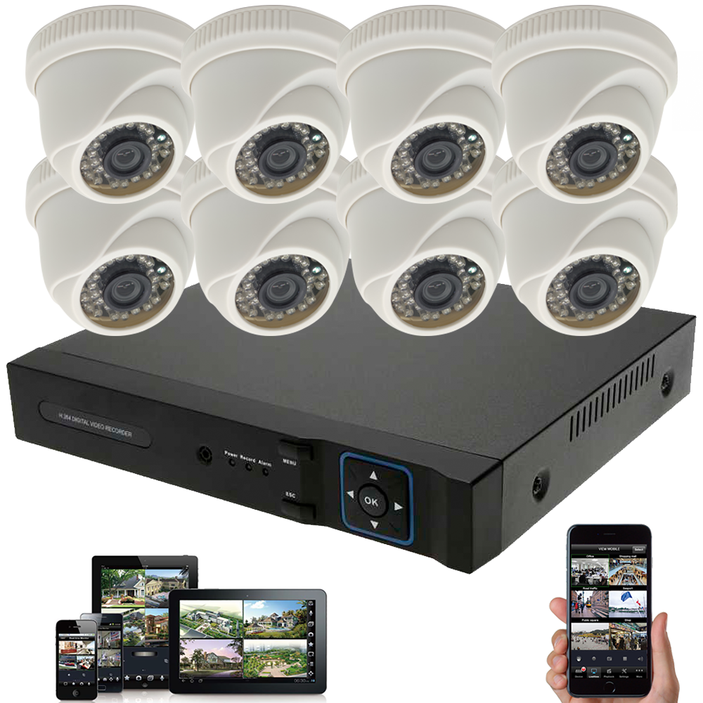 8x 5MP 4in1 Dome Überwachungskamera Set Full HD 8 Stück AHD CVI TVI CVBS Innen Kamera Digistar mit 8CH 5MP Hybrid Aufnahmegerät Viva Innen Bereich