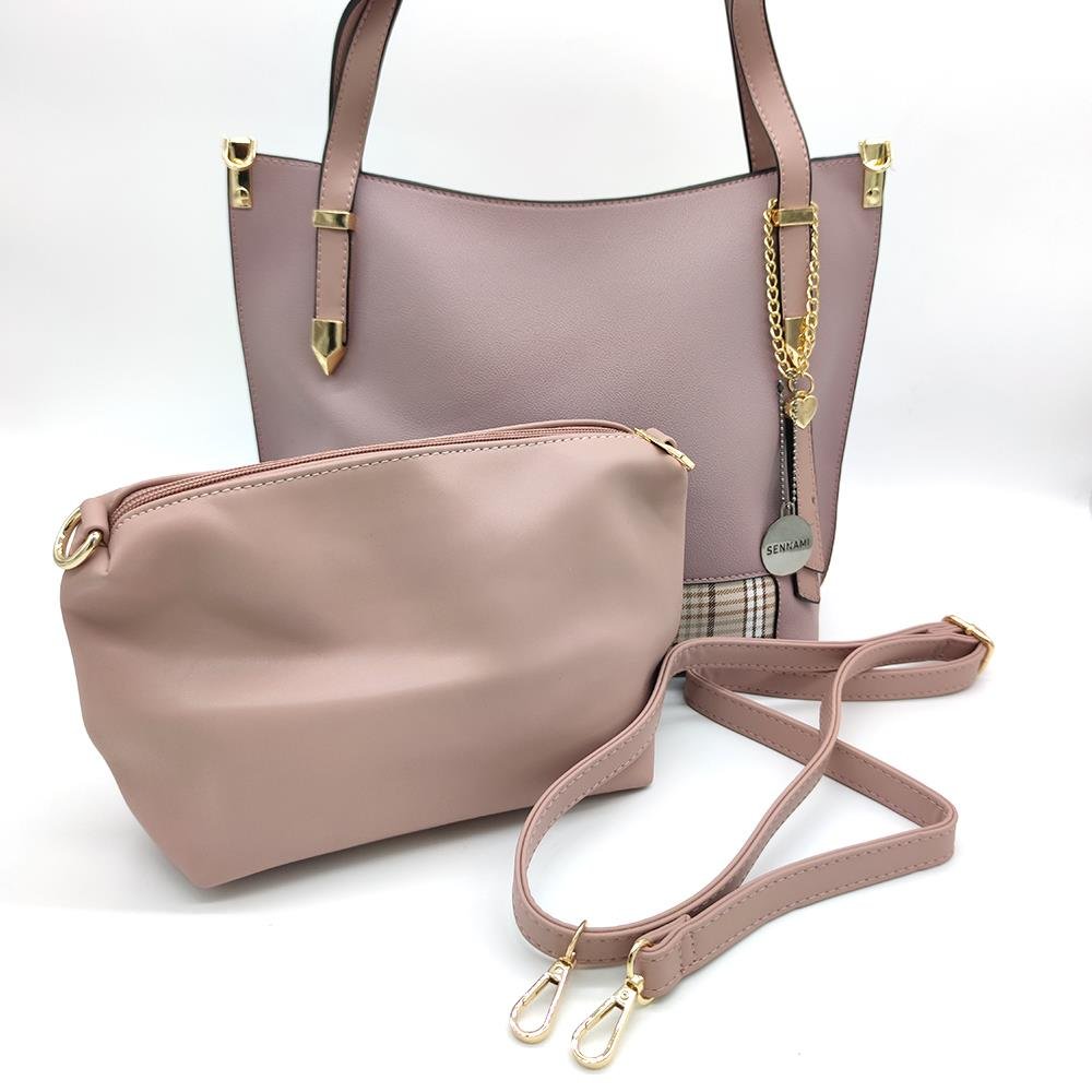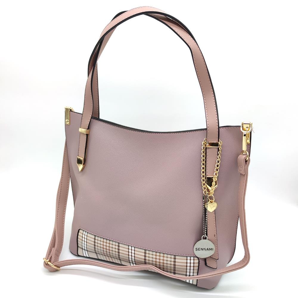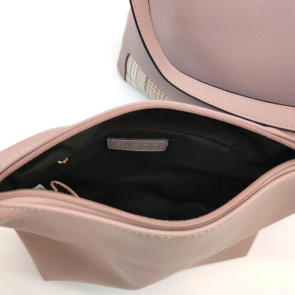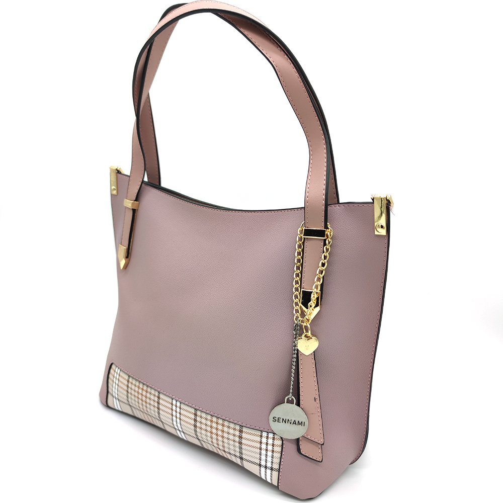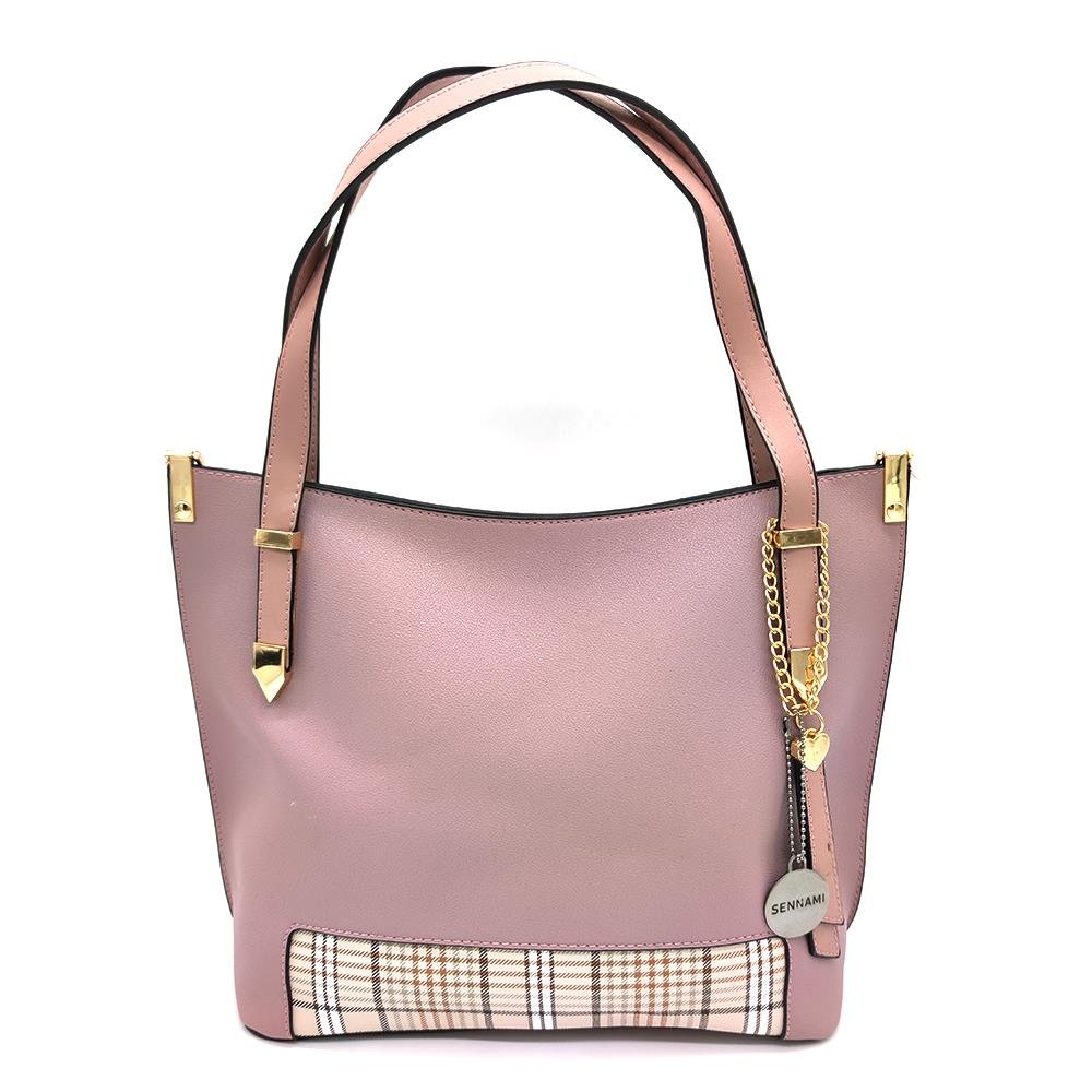 Tasche Damentasche Schultertasche mit Innentasche Karierte Rosa PU Leder Bag Design BONNIE