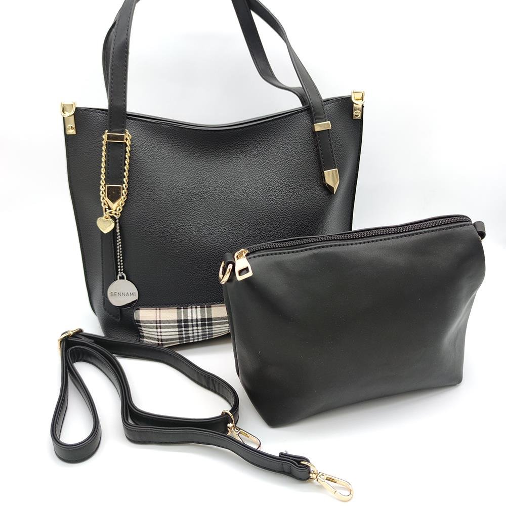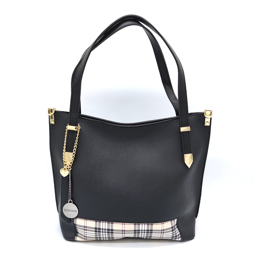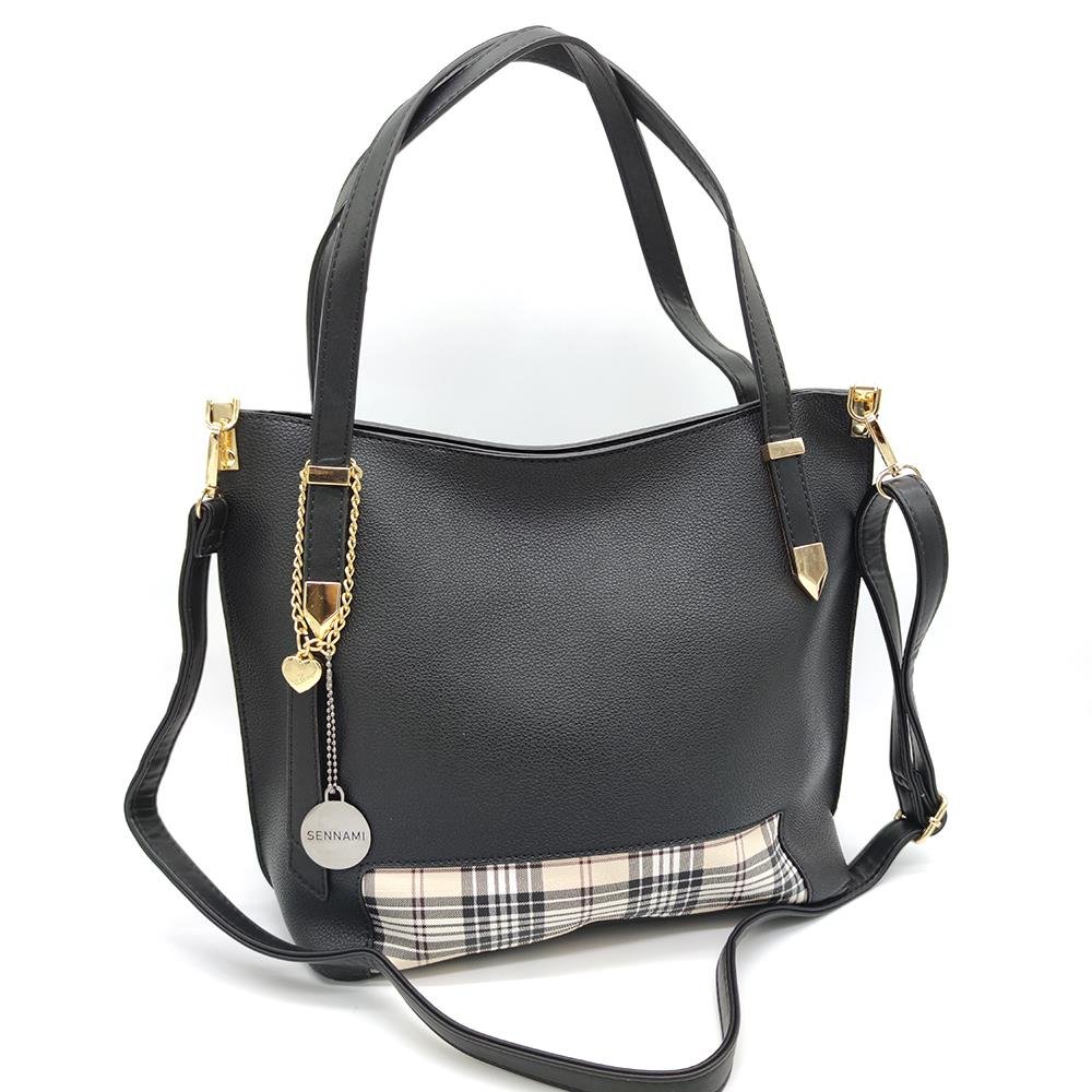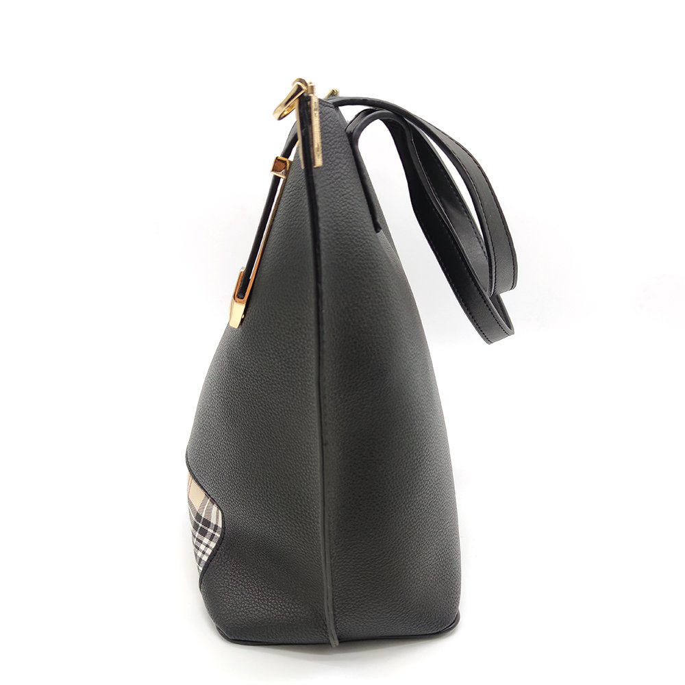 Tasche Damentasche Schultertasche mit Innentasche Karierte Schwarz PU Leder Bag Design BONNIE