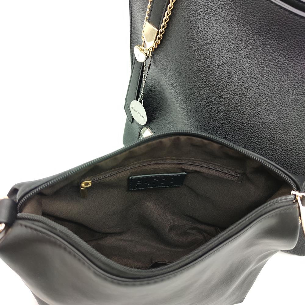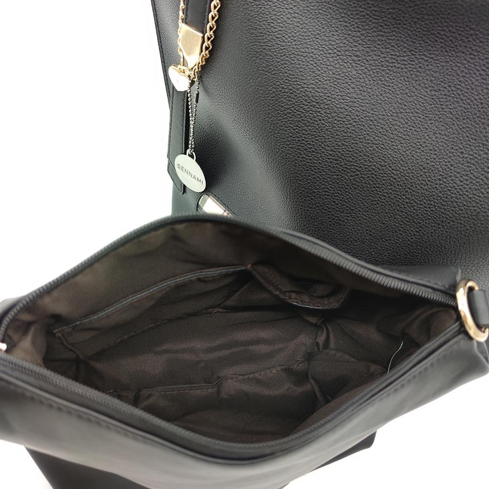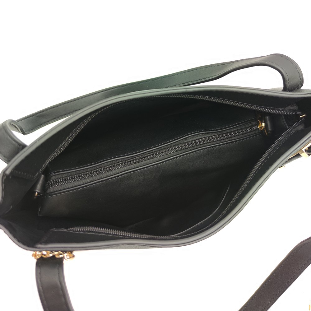 Tasche Damentasche Schultertasche Umhängetasche Schwarz Handtasche mit Gürtelschnalle Design TANIA