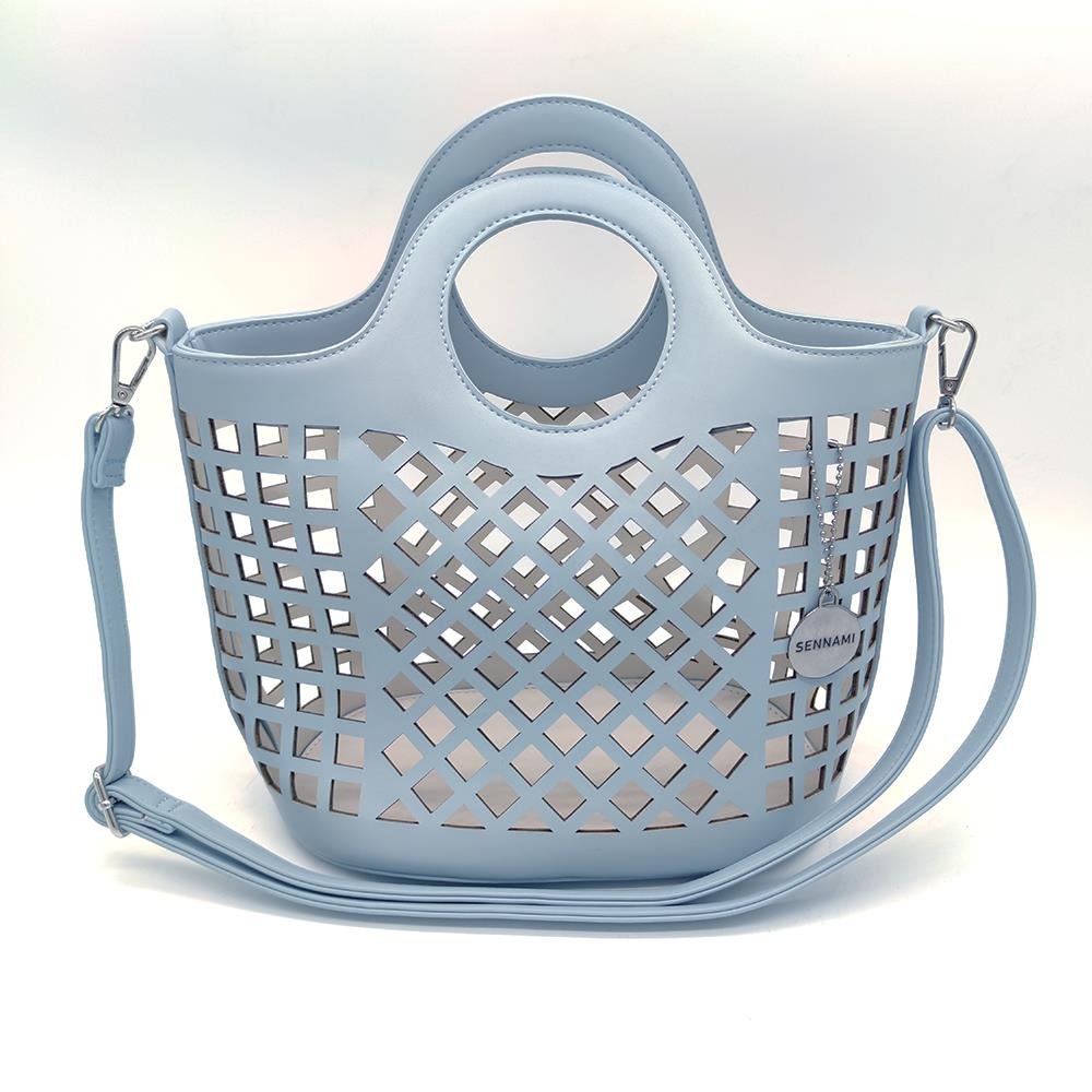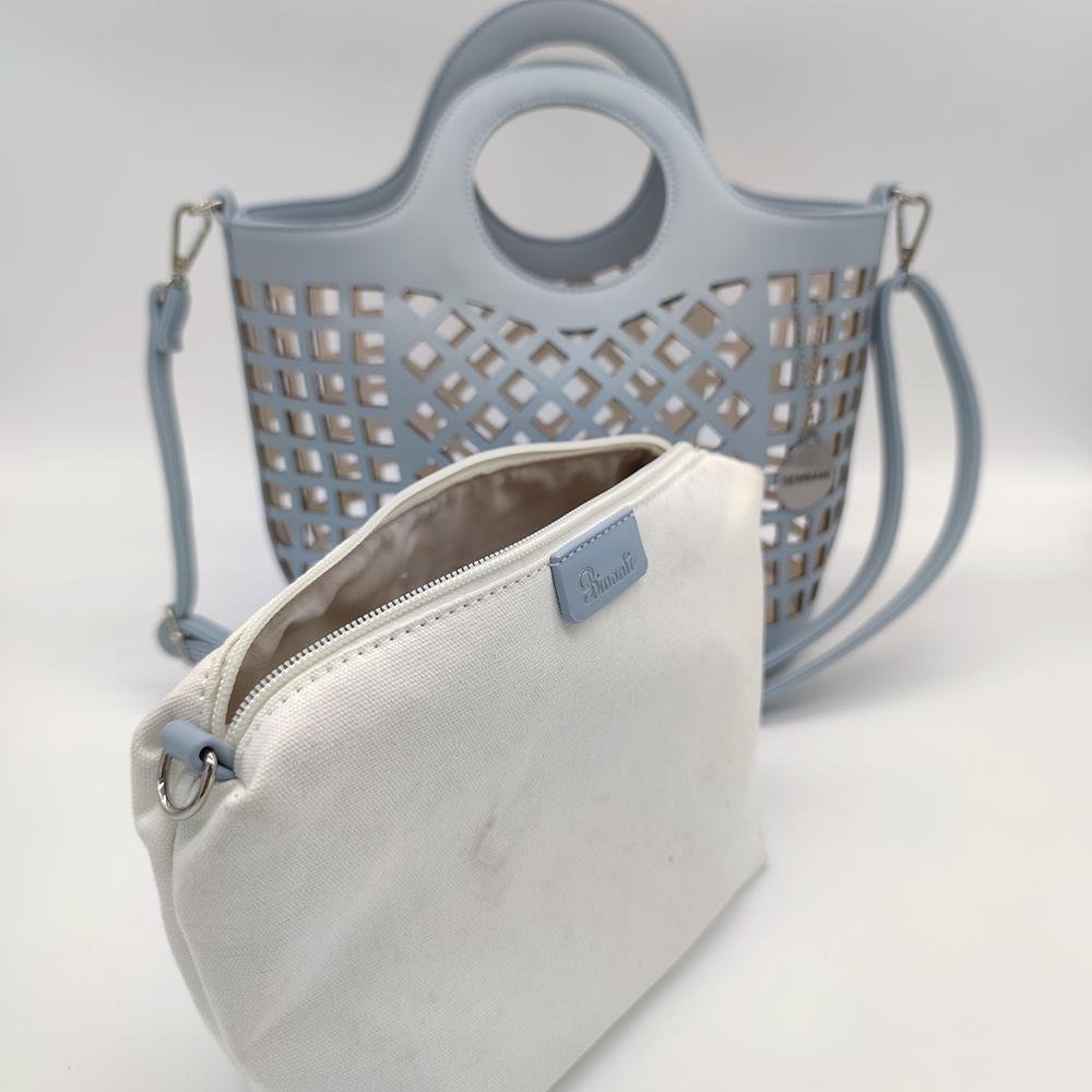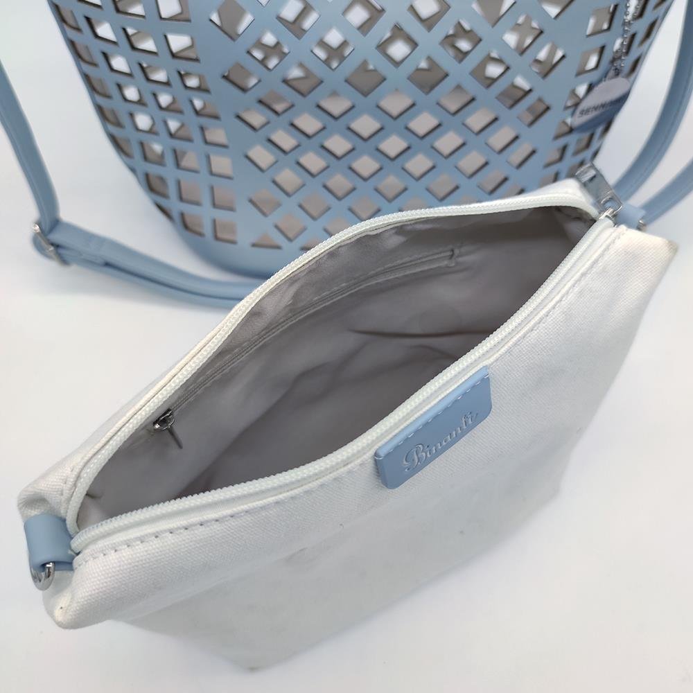 Tasche Damentasche Handtasche Blau mit durchbrochenem Muster mit Innentasche PU Leder & Stoff Design BANY