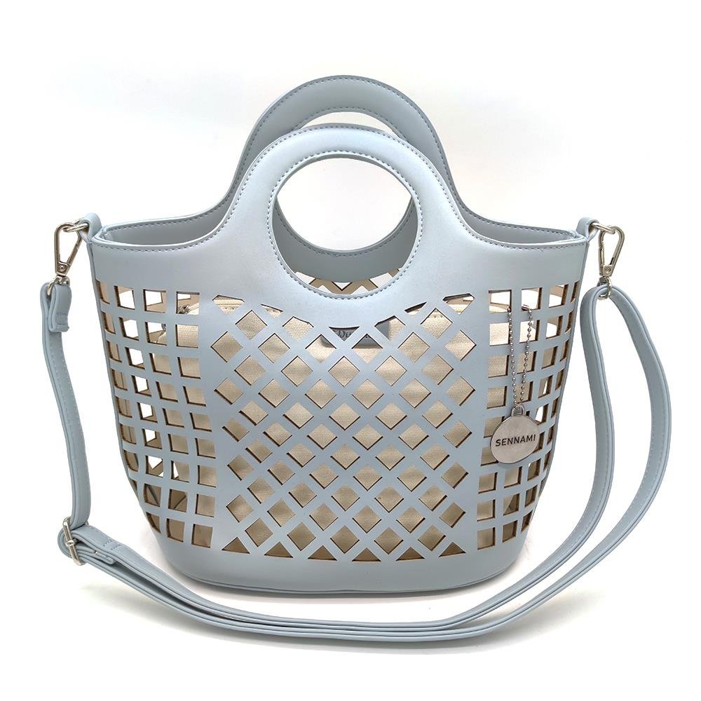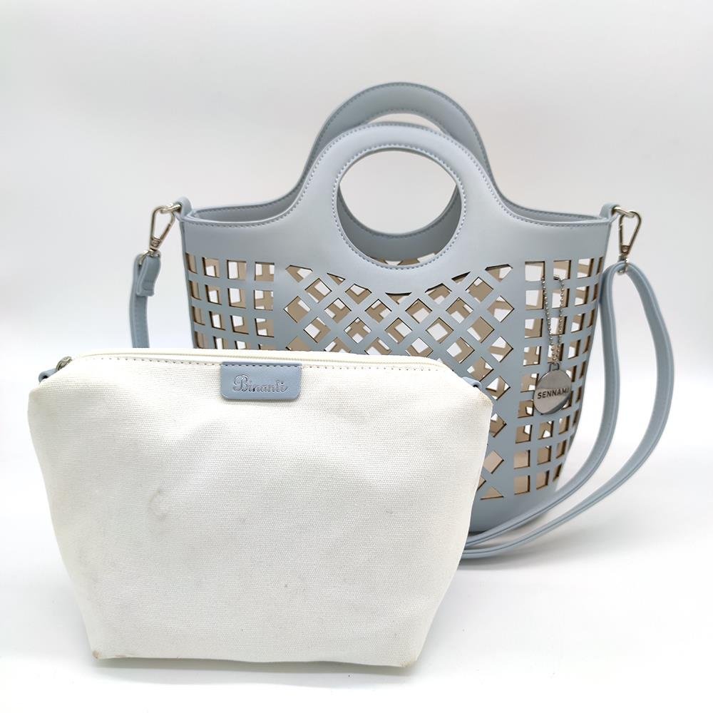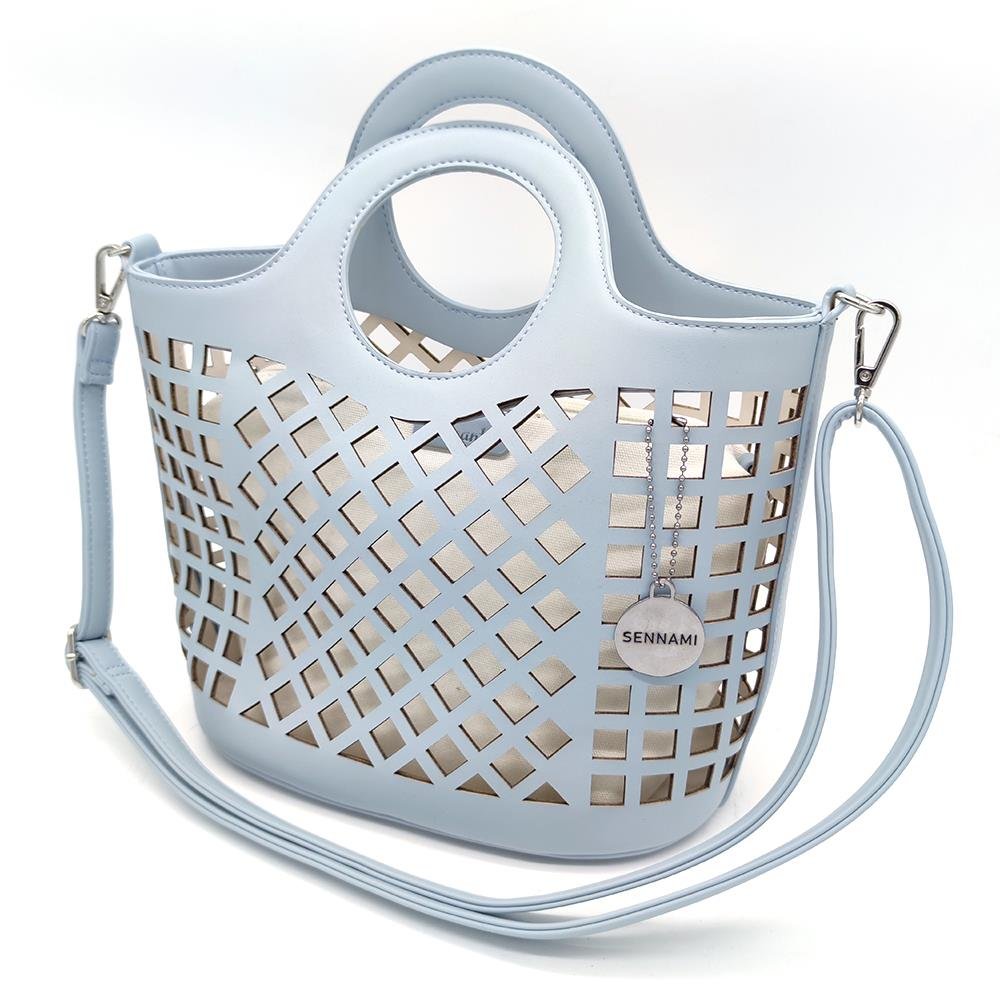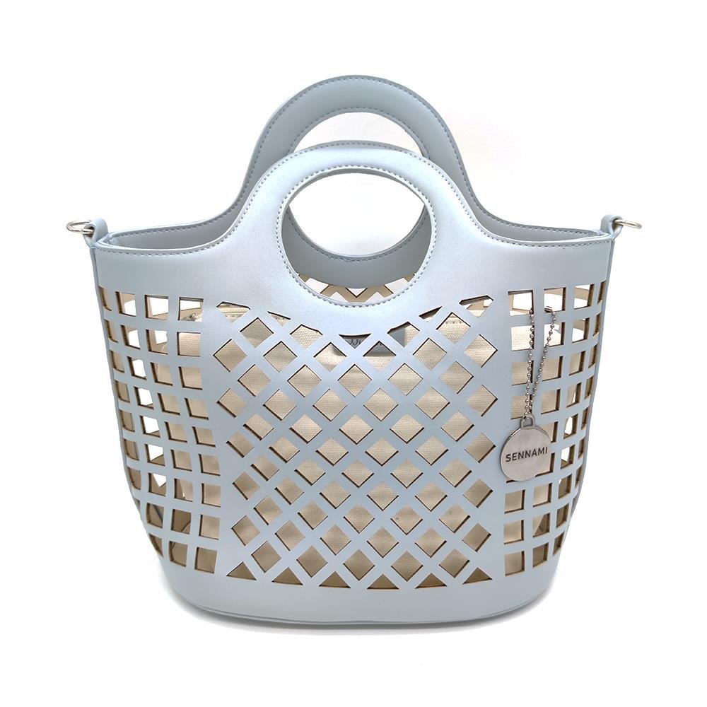 Tasche Damentasche Handtasche Blau mit durchbrochenem Muster mit Innentasche PU Leder & Stoff Design BANY
