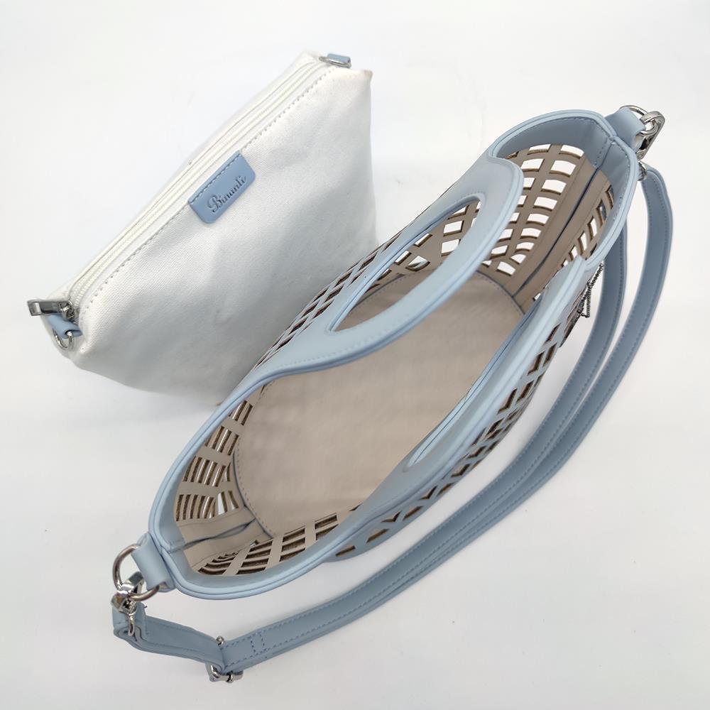 Tasche Damentasche Handtasche Blau mit durchbrochenem Muster Umhängetasche mit Innentasche Perforierte Schultertasche PU Leder & Stoff Design BANY