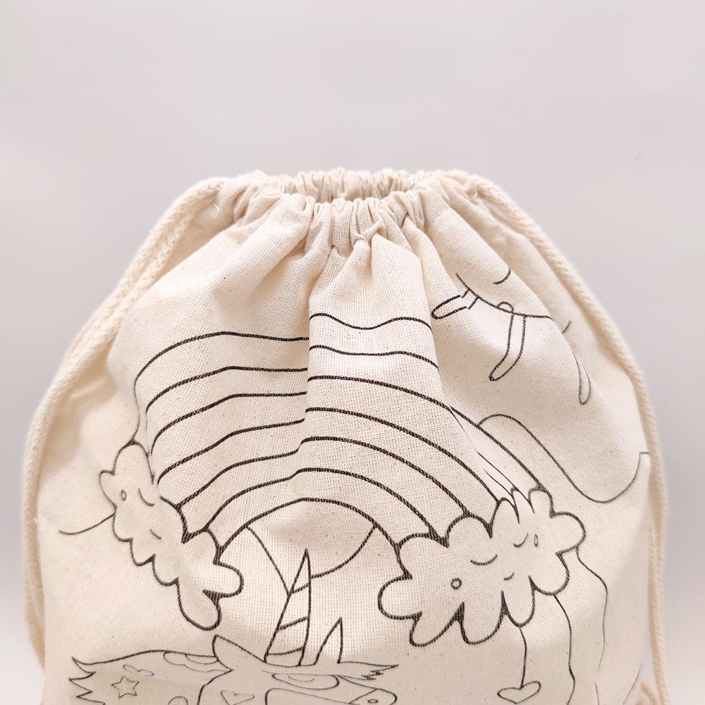 Kinder Rucksack zum Ausmalen 100% Baumwolle Waschbar Turnbeutel Modell Einhorn Figur Tasche 33×40 cm Ausmaltasche Beutel zum Ausmalen Bemalen