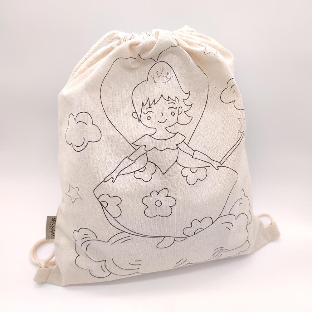 Kinder Rucksack zum Ausmalen 100% Baumwolle Waschbar Modell Prinzessin Figur Tasche 33×40 cm Ausmaltasche Beutel zum Ausmalen Bemalen
