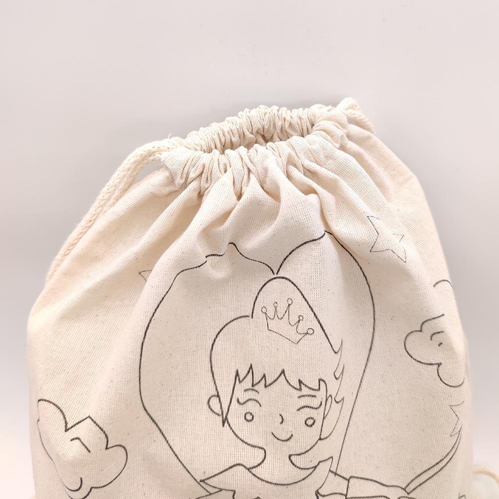 Kinder Rucksack zum Ausmalen 100% Baumwolle Waschbar Turnbeutel Modell Prinzessin Figur Tasche 33×40 cm Ausmaltasche Beutel zum Ausmalen Bemalen