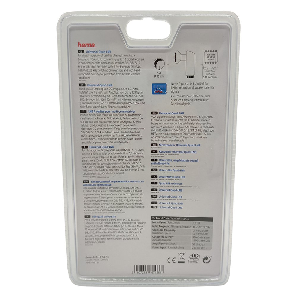Sat LNB Universal Quattro HAMA Lypsi 00047496 Weiß Multischalter LNB 4 Anschluss 0,3dB Full HD TV 3D Digital Satellite LNB