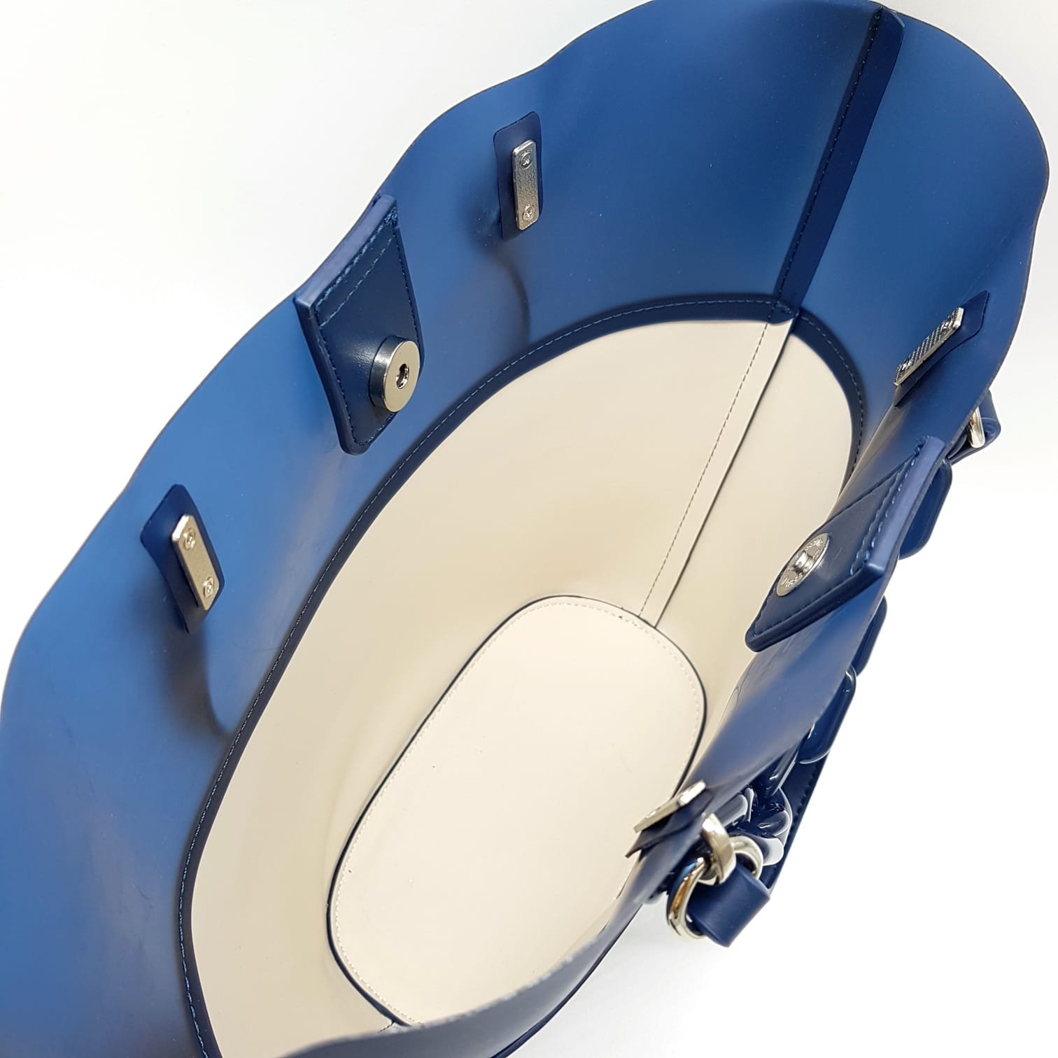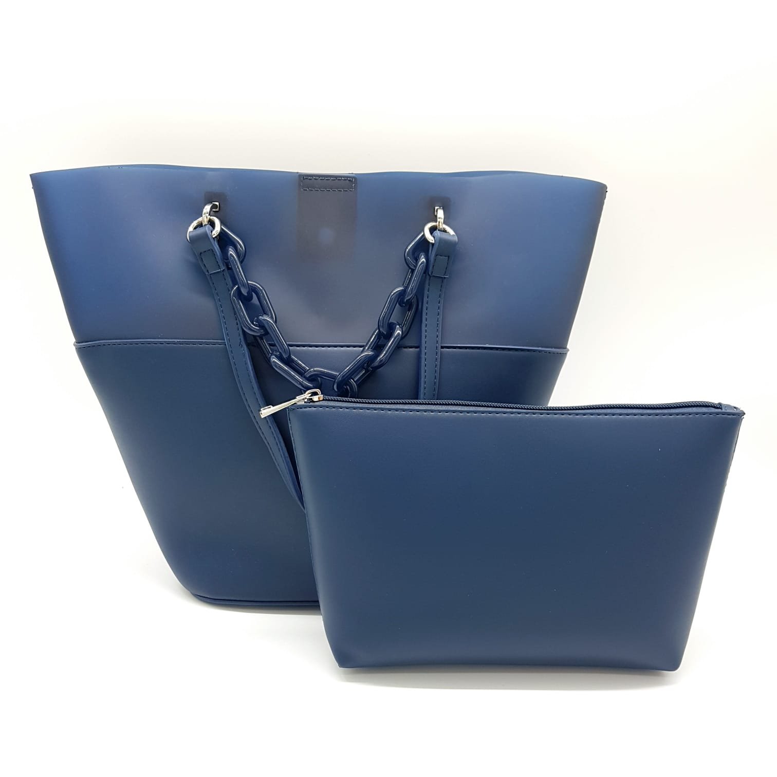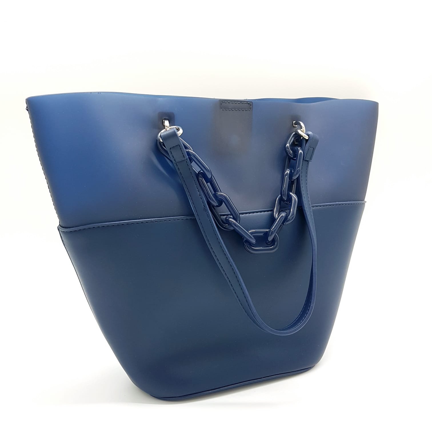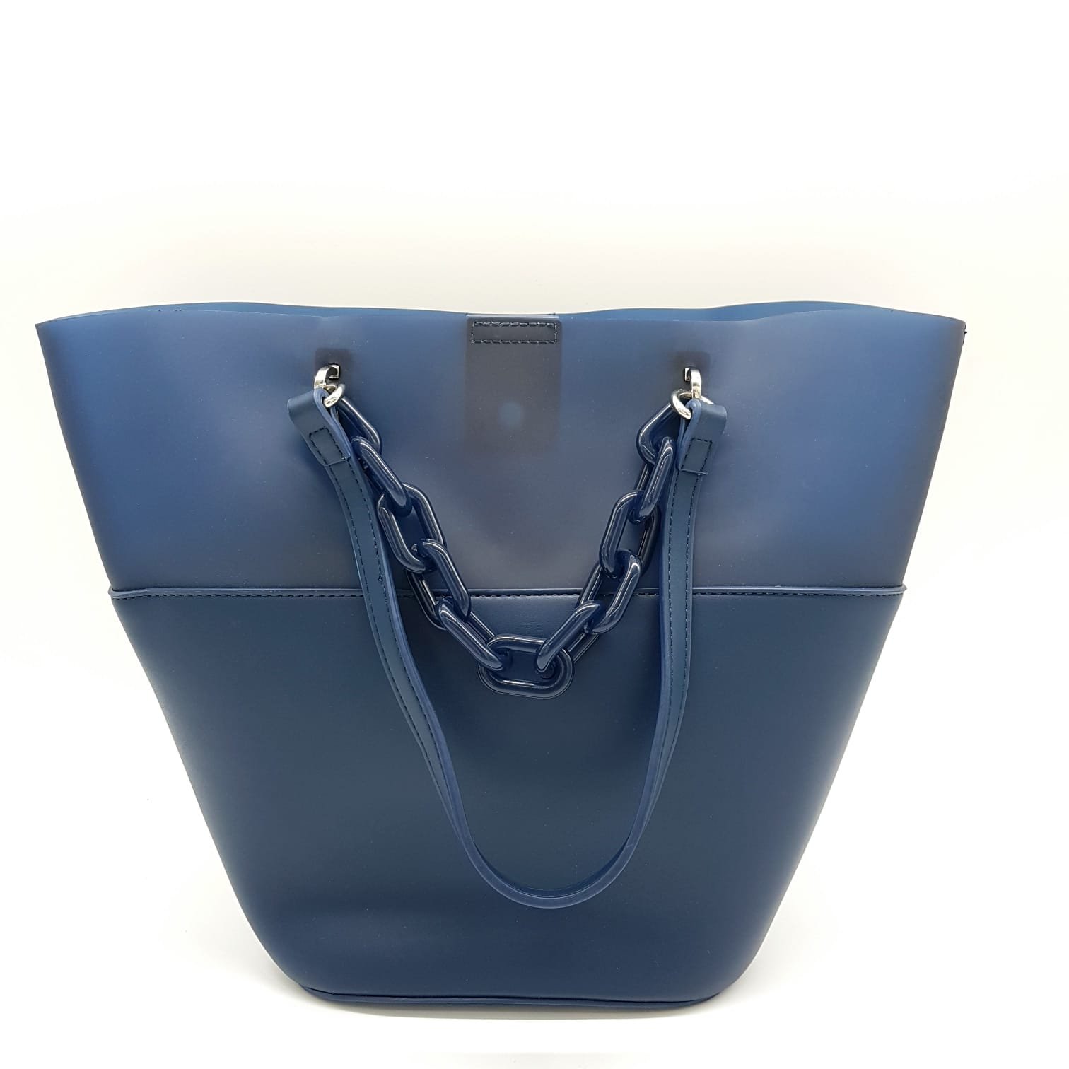 Tasche Damentasche Schultertasche mit Innentasche Blau PVC Handtasche mit Kunststoffkette Design ELSE