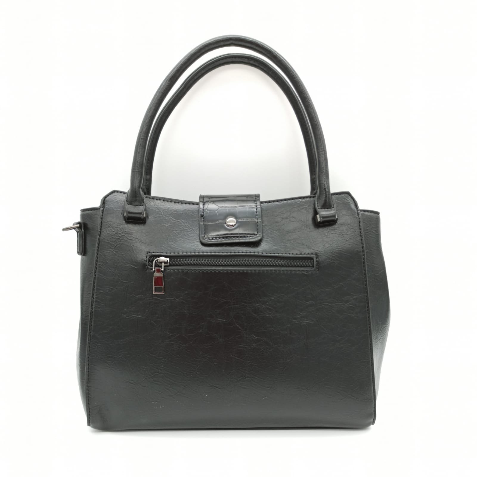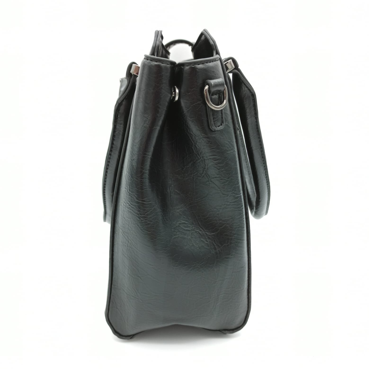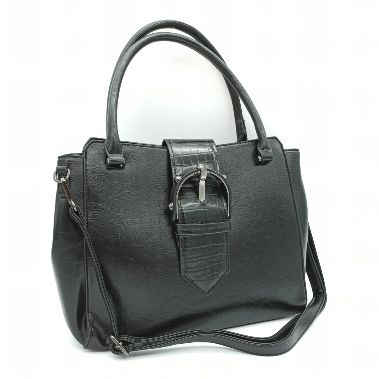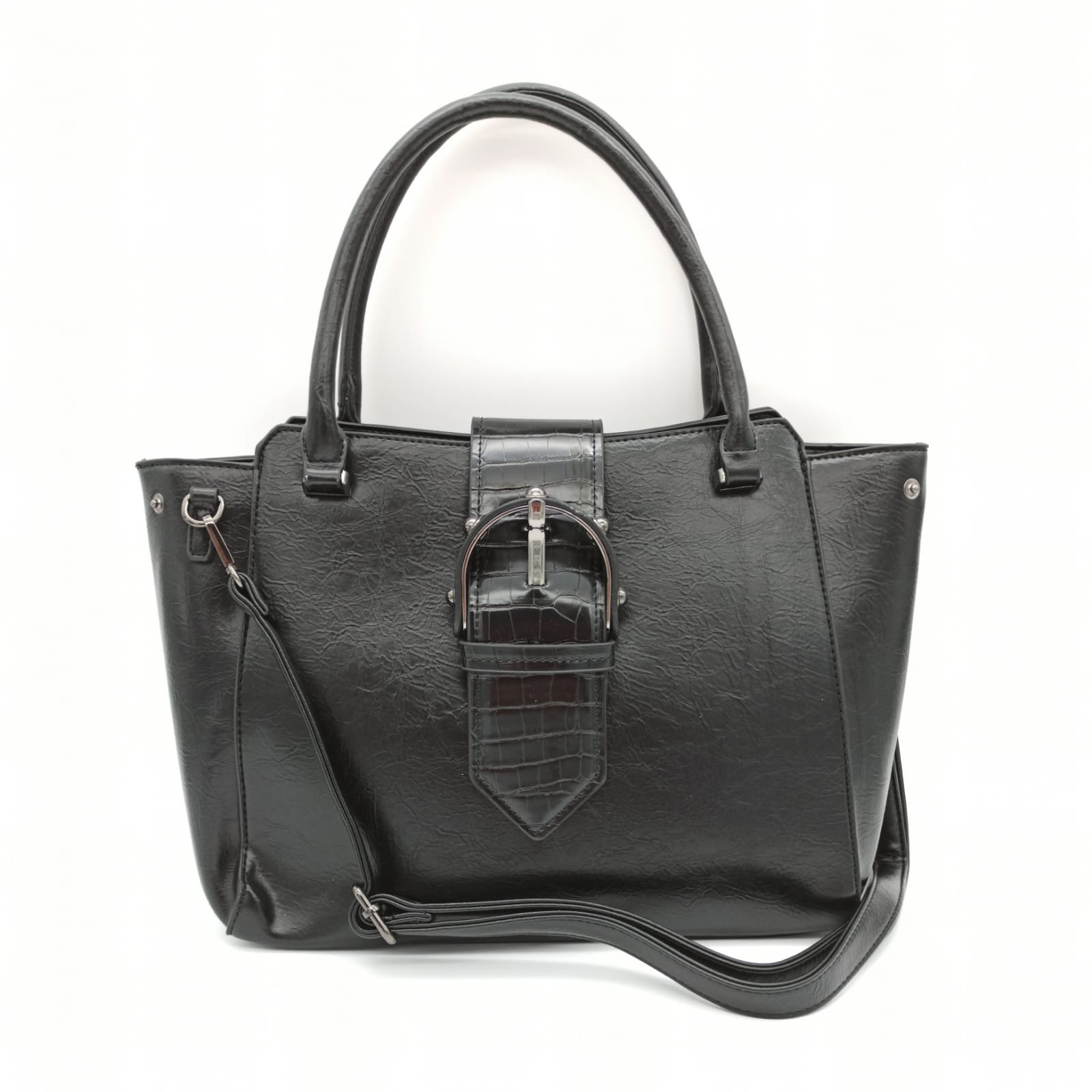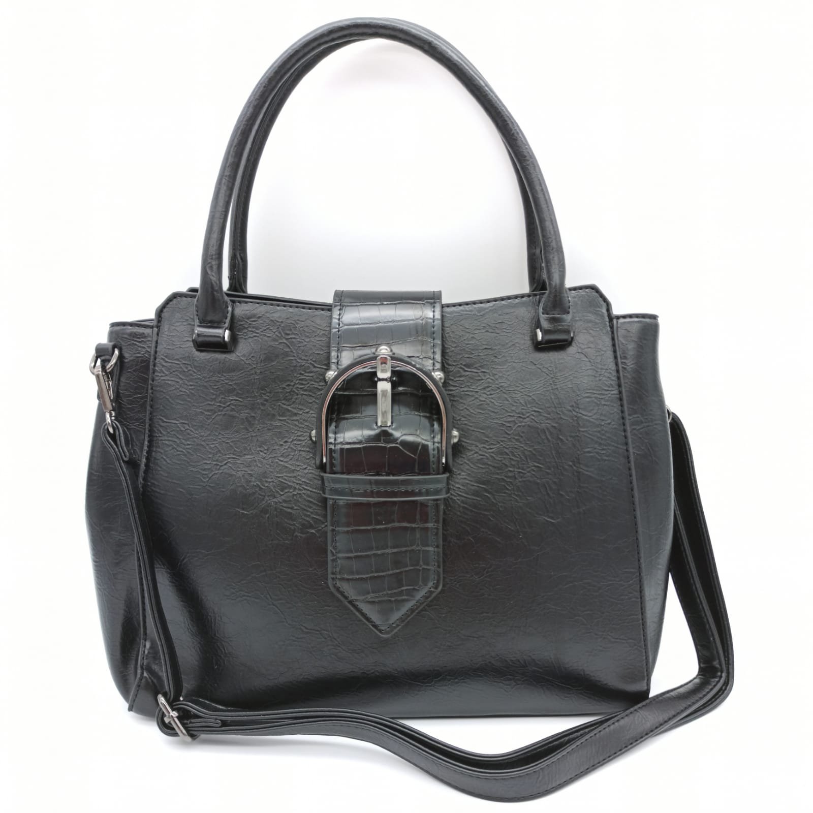 Tasche Damentasche Schultertasche Umhängetasche Schwarz Handtasche mit Gürtelschnalle Design TANIA