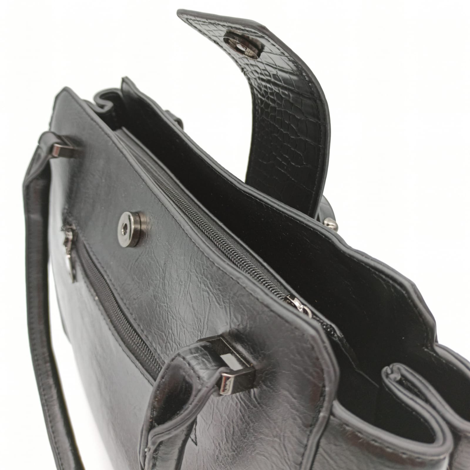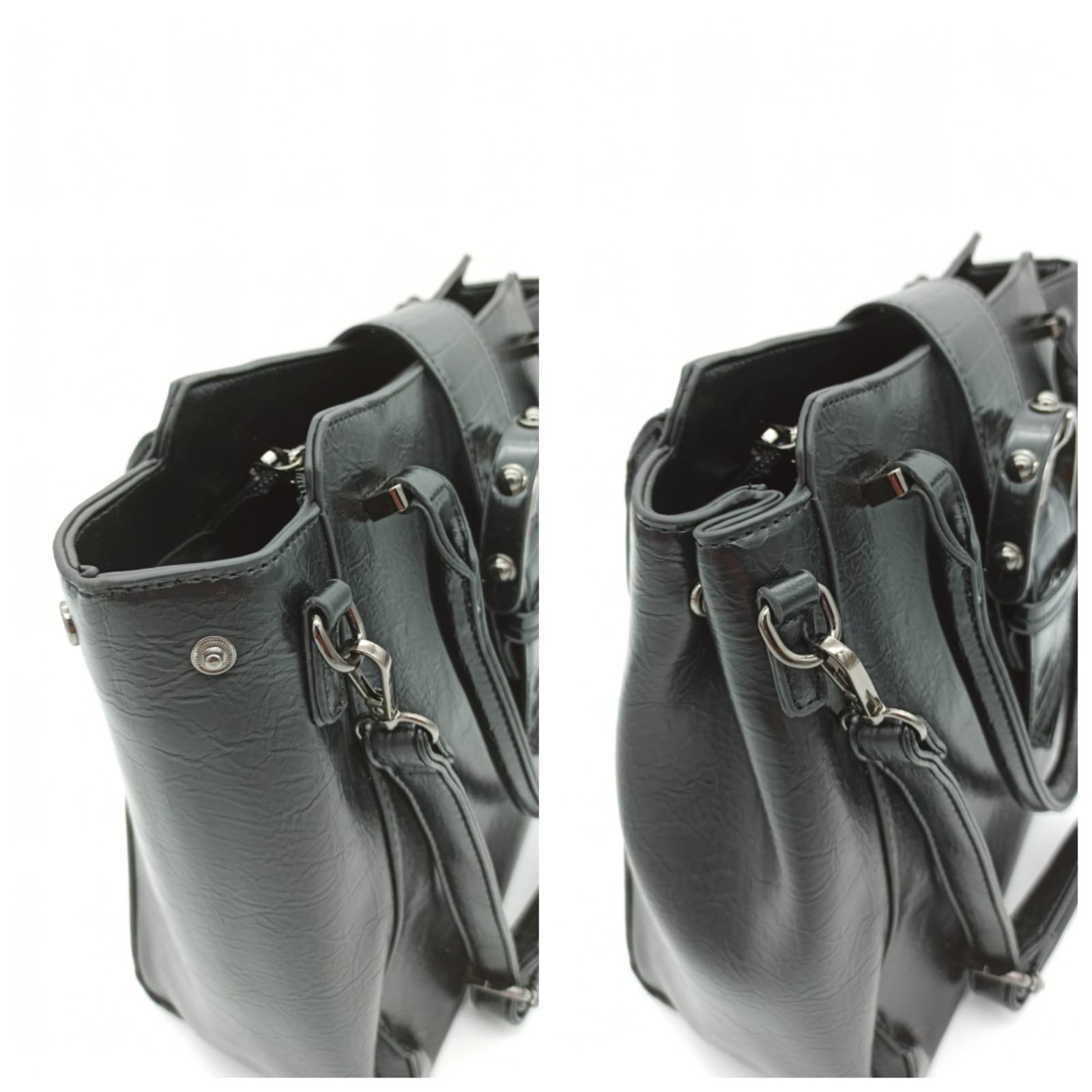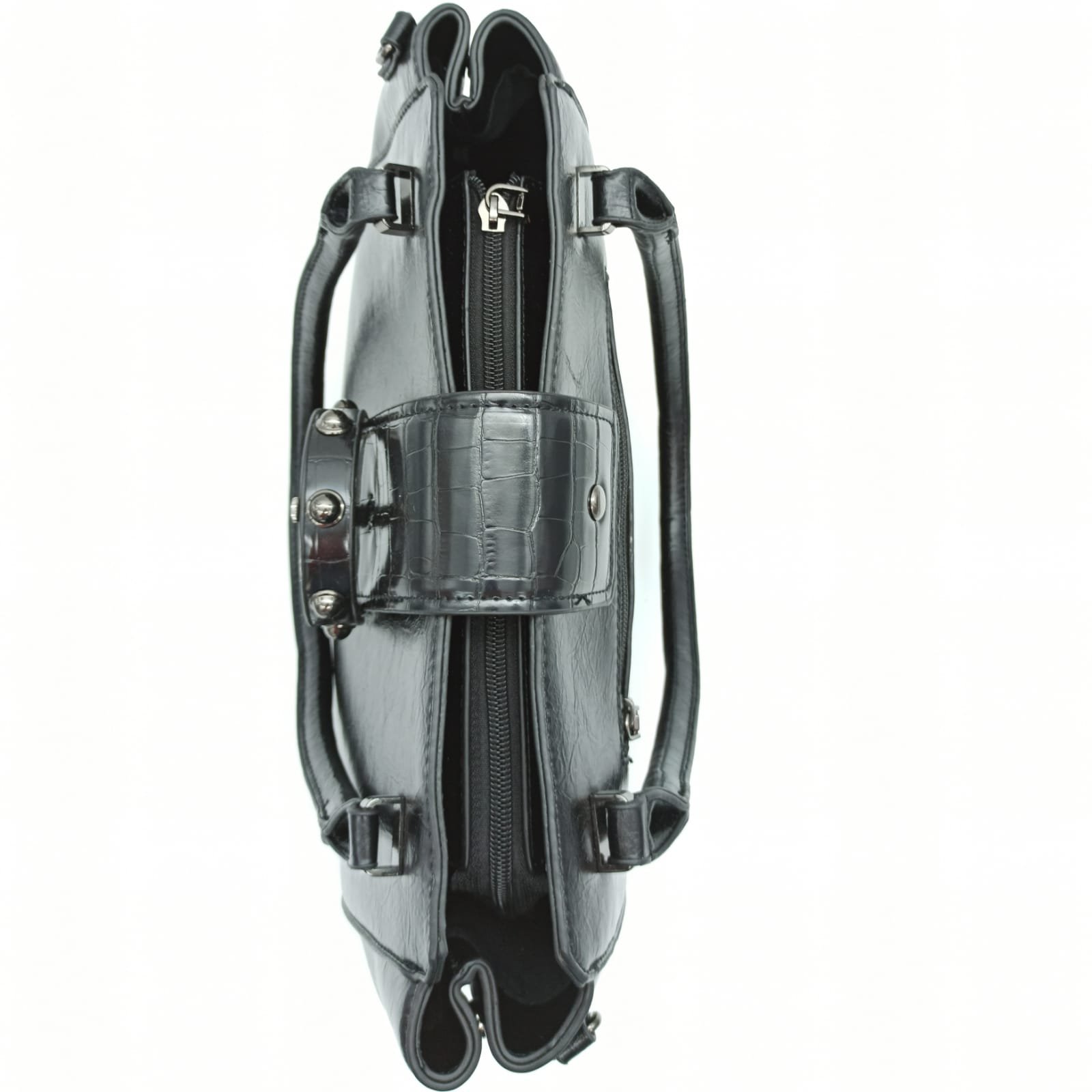 Tasche Damentasche Schultertasche Umhängetasche Schwarz Handtasche mit Gürtelschnalle Design TANIA
