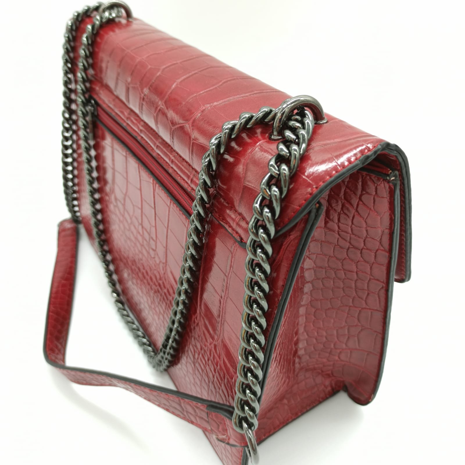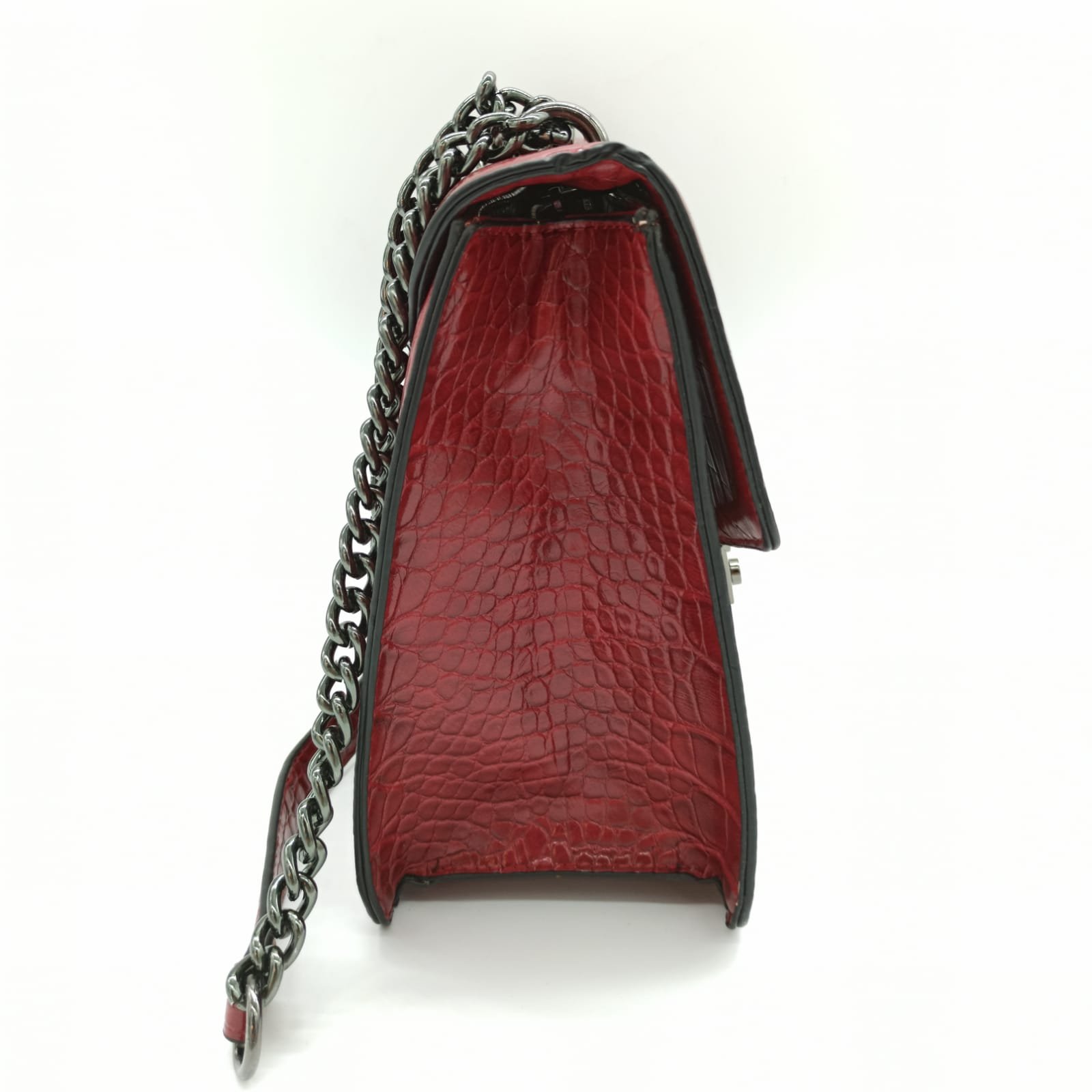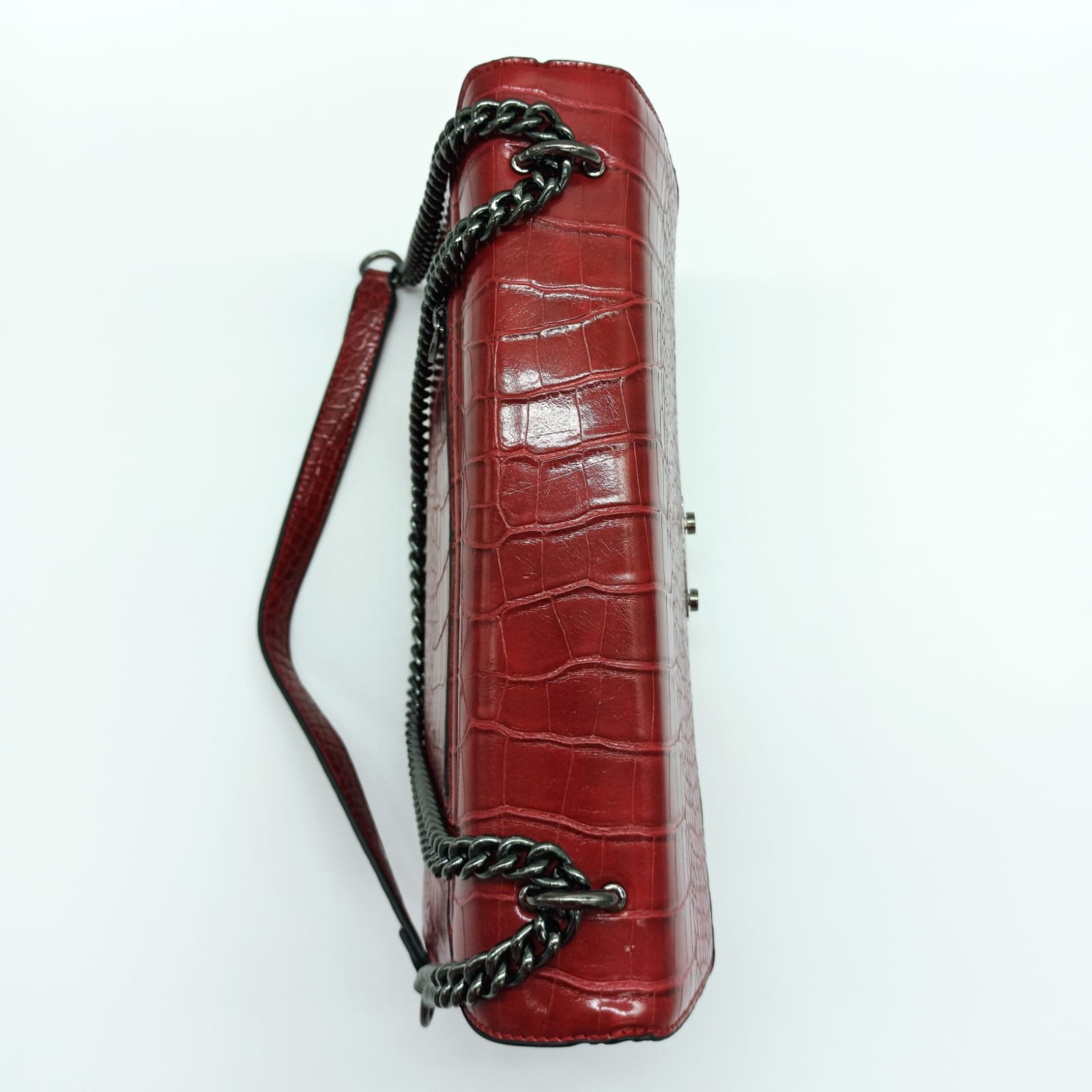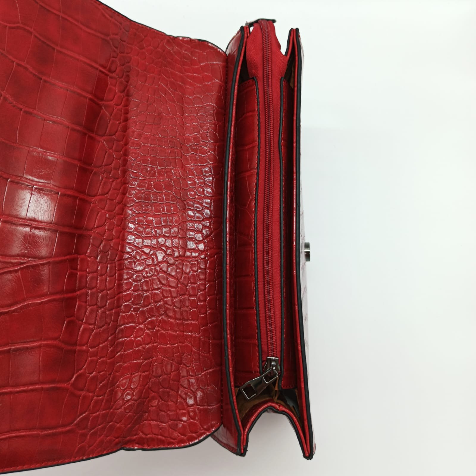 Tasche Damentasche Umhängetasche Schultertasche Rot Box Handtasche mit Kettenhenkel Schlange Muster Leder Gesteppte Klappe Design COCO