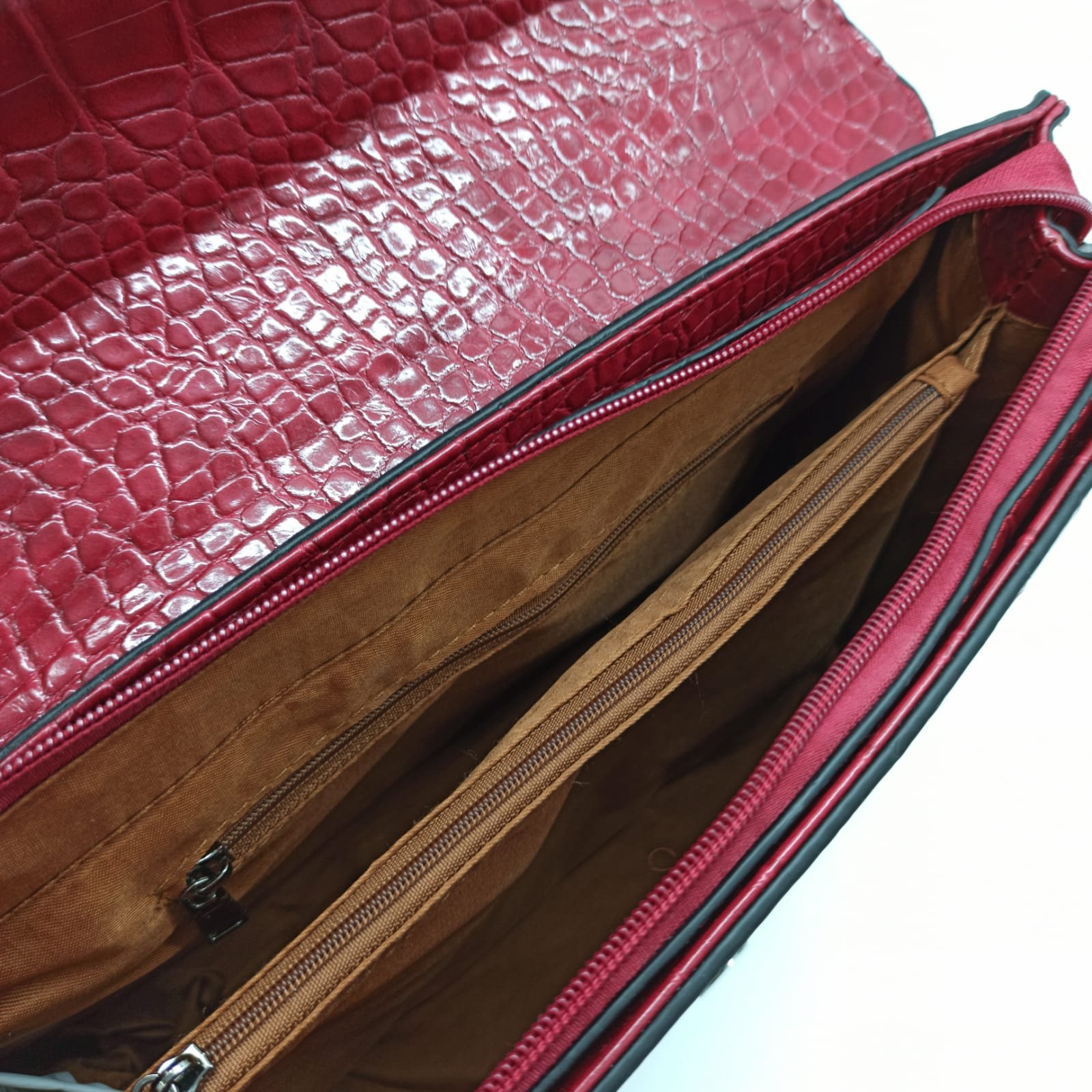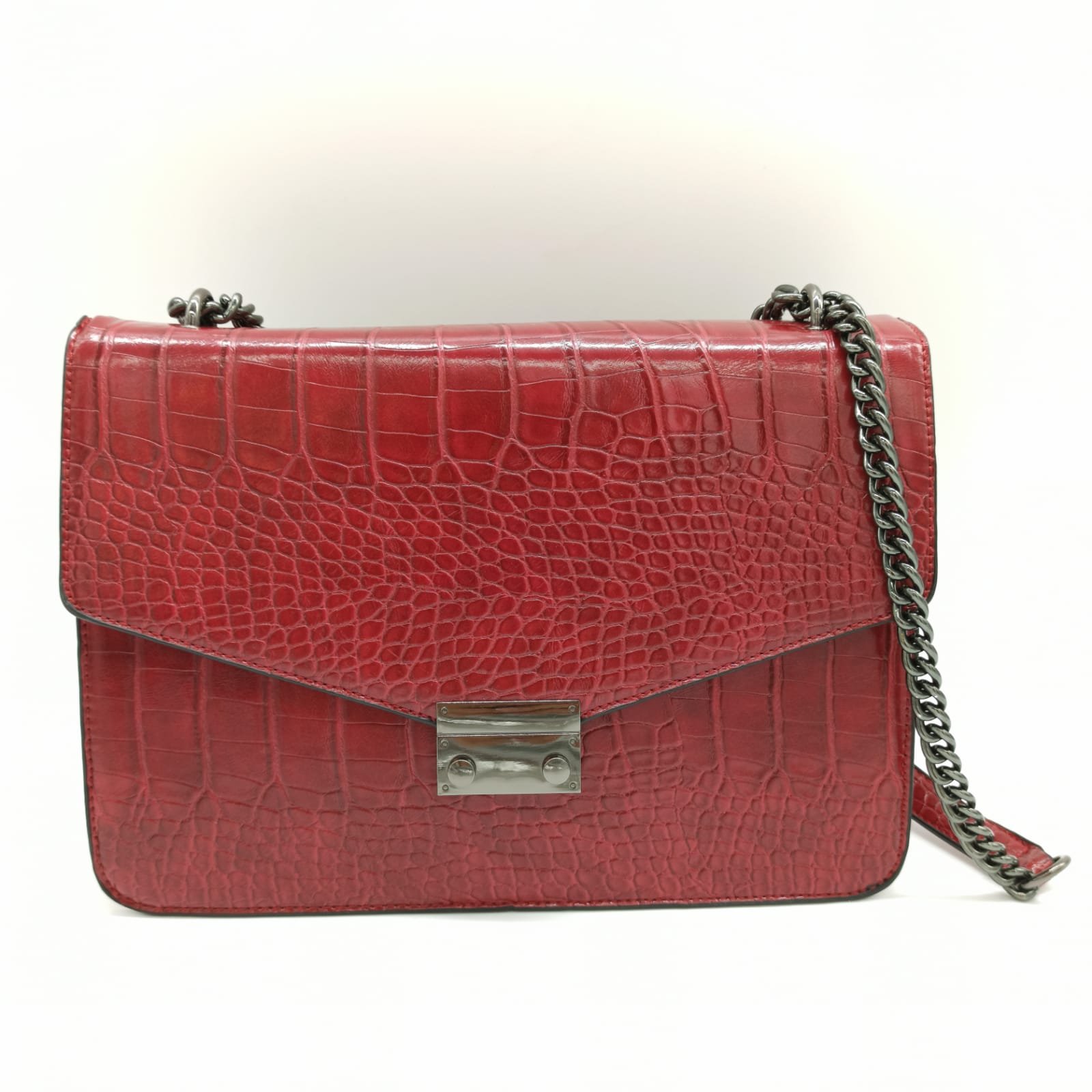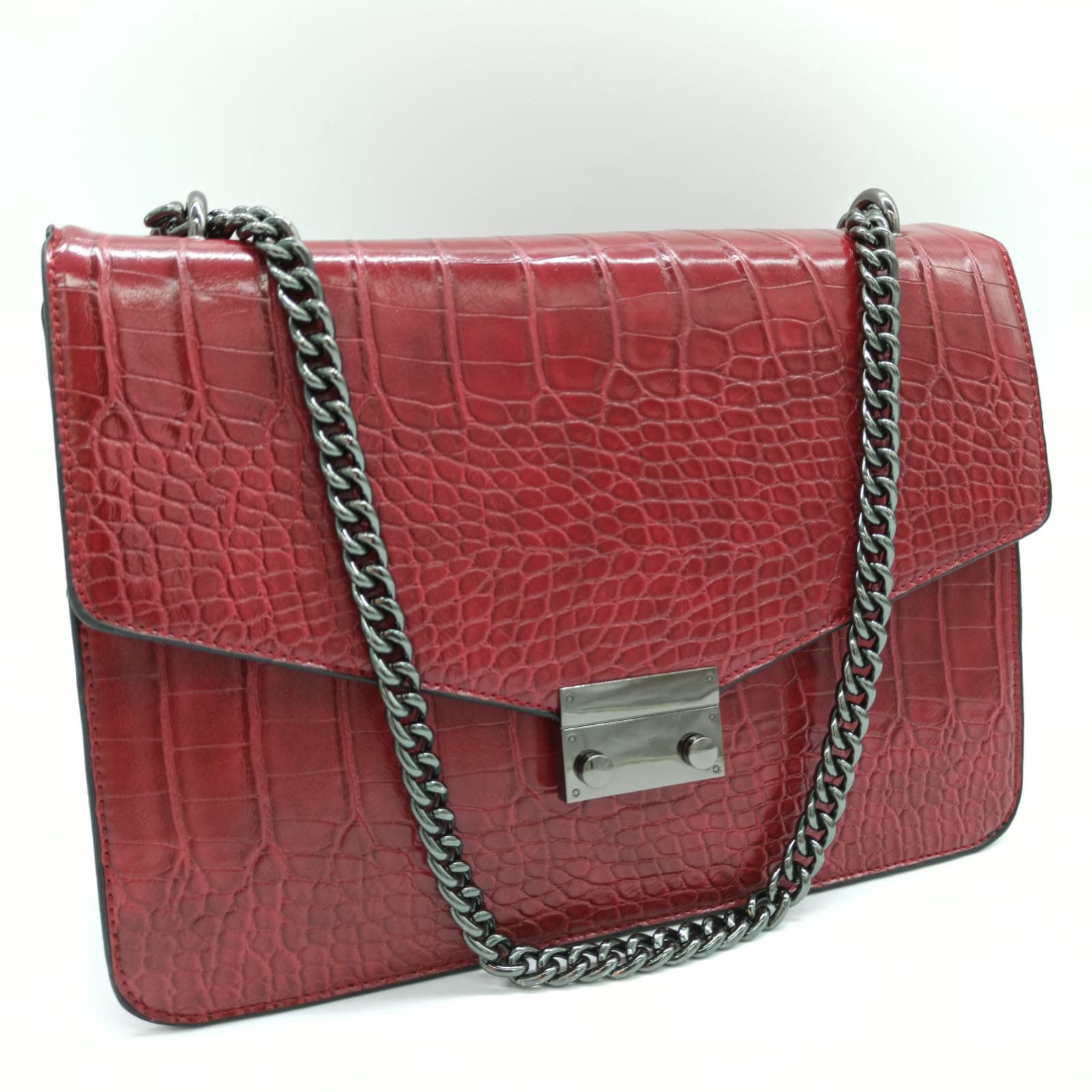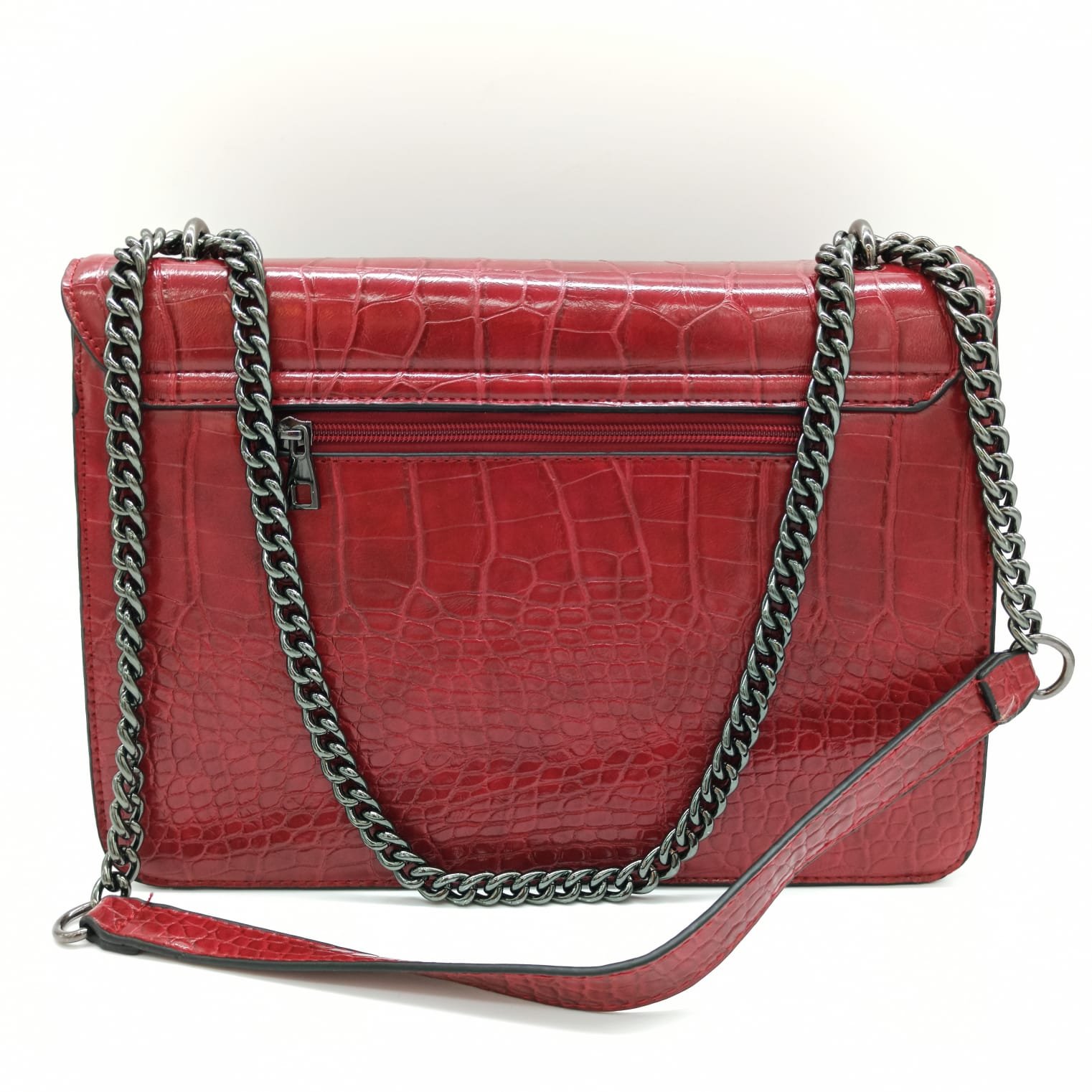 Tasche Damentasche Umhängetasche Schultertasche Rot Box Handtasche mit Kettenhenkel Schlange Muster Leder Gesteppte Klappe Design COCO