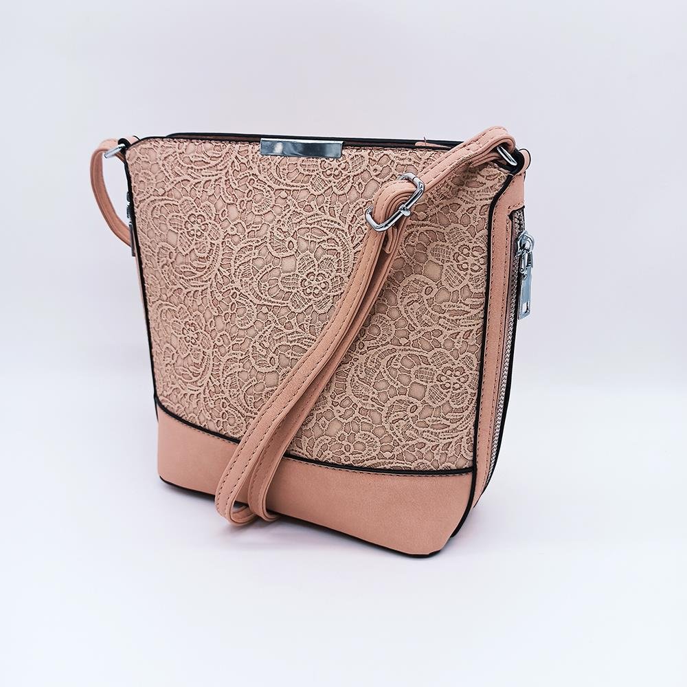 Damentasche Umhängetasche Rosa Textil mit Blumen Muster Design FRIDA
